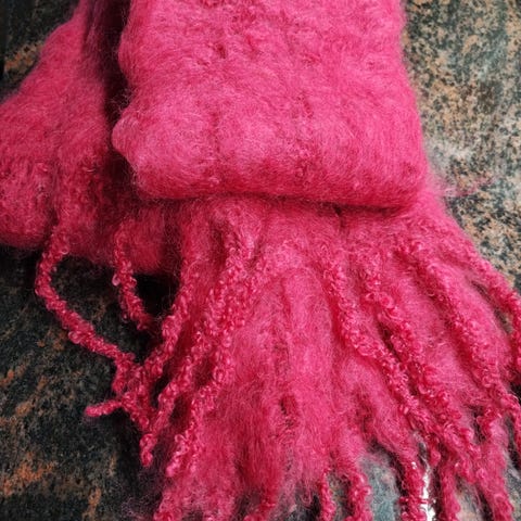Tummanharmaa balmuir huivi kokoa 230 x 50 cm. 81 % alpakkaa. Ohuempi materiaali kuin esim. Kid mohair huivissa.