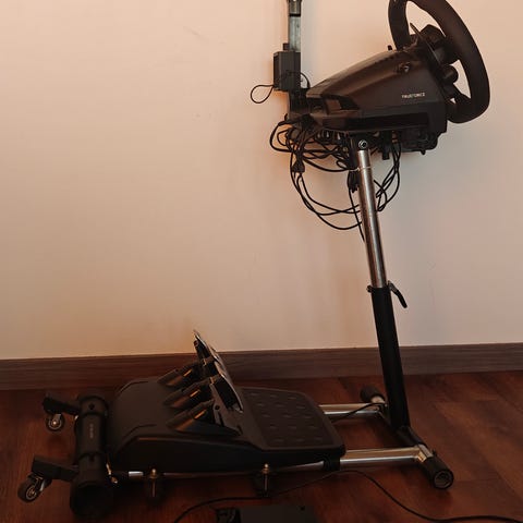 Myydään aloittelevan simurigi-Kolitek eli Logitech G920 H-kaavioineen vähän tuunattuna. 3D-tulostimella tehty vedonpoistaja vaihdekepin ja polkimien piuhoille, Lancian keskiölätkä (alkuperäinen tulee mukaan) ja tuommoiset punaiset jatkopalat että valikkonapeille yltää lyhkäisemmälläkin peukalolla. Kaasupolkimelle on tehty korokepala, että se tulee vähän lähemmäksi kuskia, ja siksi pitemmät ruuvit, alkuperäiset tulee mukaan. Mukaan tulee myös kuvan käsijarru, mallia eBay, eli Arduinopohjainen käkkä. Toimii useimmissa peleissä heittämällä, testattu muunmuassa Dirt Rallyissä ja EA Sports WRC:ssä, saattaa saada kikkailemalla toimimaan muissakin peleissä. Uutena koko setin hinta lähentelee 300€, oma hintapyyntö 200€ tai paras tarjous. Voidaan myydä myös erikseen.