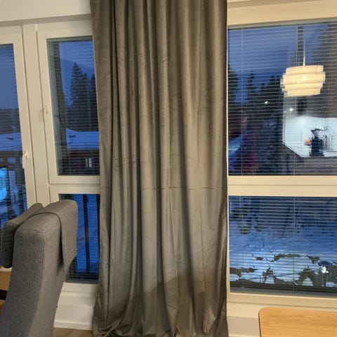 Kokeiltu ikkunaan mutta ei ollutkaan sopiva väri meille. Sopivat ikkunaan jossa normi huonekorkeus.
