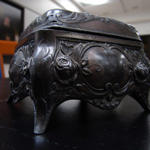 1800-luvun historiallinen kassakaappi / säilytysrasia avaimineen ja kahvalla