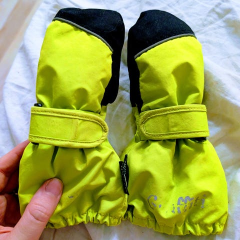Mustat yhdellä käytetyt satunnaisesti talvihanskat, koko 1-2