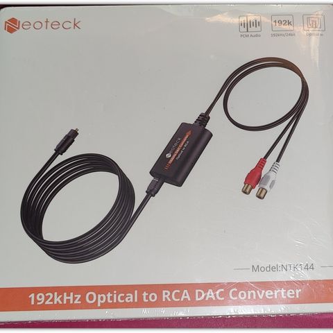 Myydään kuvan uusi digital to analog audio muunnin johtoineen. Sisääntuloja optinen, koaksiaali ja lähdöt RCA ja kuuloke. Toimii 5 V DC eli USB laturilla.
