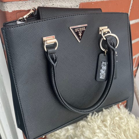 GUESS naisten laukku ja lompakko. Laukku ja lompakko ovat tuotu Jenkeistä ja ovat vsin jääneet käyttämättä kaikkien muiden laukkujen ohella. Molemmissa on GUESS-logo ja laukussa myös Guess Lucky Charm, jota voi käyttää avaimenperänä. Laukussa on säädettävät olka-/kantohihnat ja vetokejullinen sisätasku. Lompakossa on ranneke, joka helpottaa kantamista.