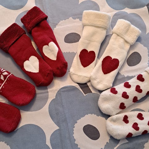 Sukissa on nukkaa,mutta ehjiä ovat kaikki.
