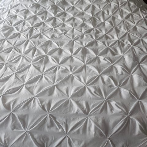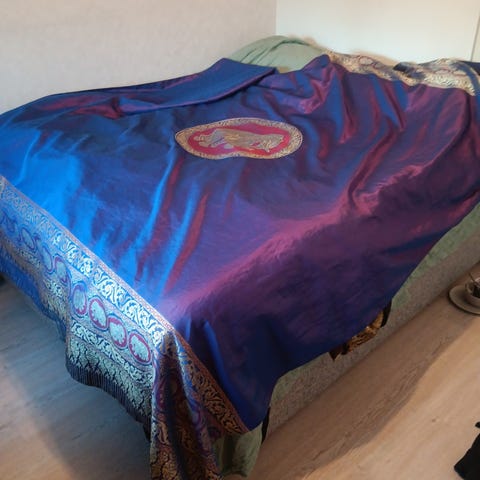 Harmaa Elloksen päiväpeitto 260x260cm. Myynnissä myös yhteen sopiva sängynpääty 180cm
