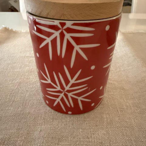 Arabia purkkisarjan purkki, jossa on sininen ja punainen väri. Sopii esimerkiksi keittiön säilytykseen tai tarjoiluun. Huom ! Tiiviste hieman vinossa. Vain nouto Suurpelto Espoo.