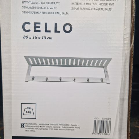 Seinään kiinnitettävä hattuhylly, missä myös koukut esim takeille tai laukuille
