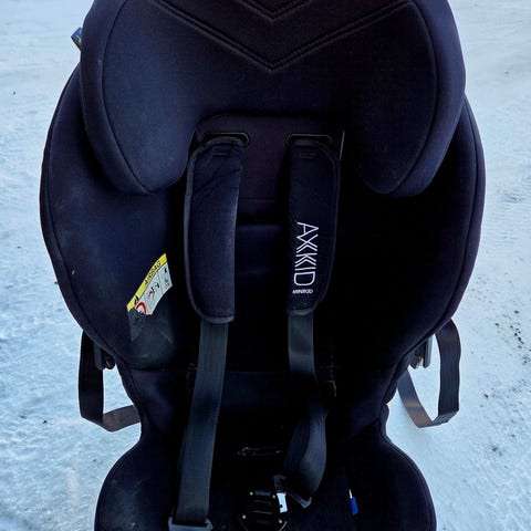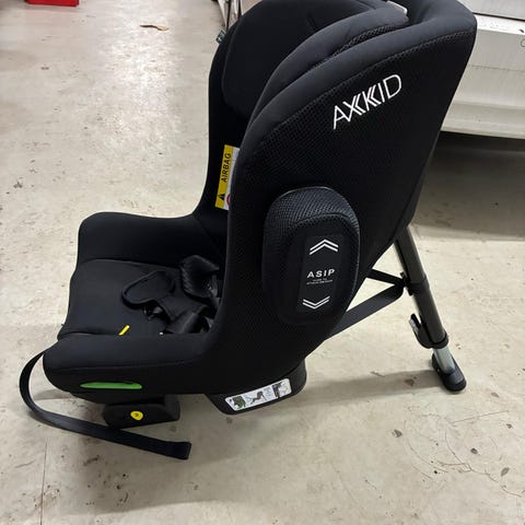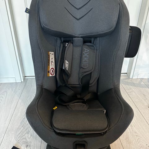 Axkid Minikid 4, kellotaulujen mukaan valmistettu 05/23, ostettu ja otettu käyttöön alkuvuodesta 2024. Ollut käytössä satunnaisesti mummolassa. Kolaroimaton, kankaissa näkyy hieman jälkeä, ei ole pesty. Pienentimen styroksit halki, voi teipata, mutta ei vaikuta turvallisuuteen. Säilytetty lämpimässä varastossa.