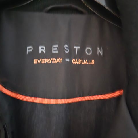 Todella ryhdikäs ja erittäin siisti miesten Preston-merkkinen takki. Edessä vetoketju ja napitus. Vetoketjulliset rinta-, povi- ja sivutaskut. Sivujen tampeilla mahdollisuus säätää helman leveyttä. Hihansuissa napitus. Kainalosta kainaloon 66 cm, kainalosta helmaan 45 cm.