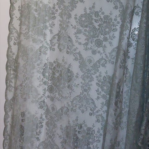 Pitsiverhot (2kpl). Yhden pitsiverhon koko: Korkeus n. 154cm ja leveys n. 153cm. Hyvin pieni "reikä" yhden kukan vieressä, näkyy viimeisessä kuvassa.