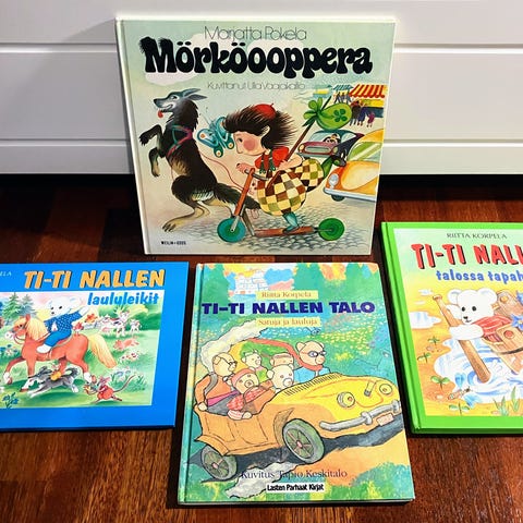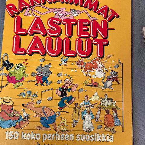 * Kirja, joka sopii hyvin mm. päiväkotien, muskareiden ja koulujen käyttöön, sisältää 14 ennen julkaisematonta laulua ja niistä koostuvan tarinan. Laulujen säestys on merkitty helpoin sointumerkein. Kirja lopussa myös laulujen leikkiohjeet. Kirjan mukana on CD-levy, jossa esitetään kaikki kirjan laulut. Ne voidaan harjoitella ja laulaa myös äänitteen säestyksellä." Uudenveroinen kovakantinen kirja (saattaa olla jopa lukematon, sillä annoin näitä jokunen vuosi sitten joululahjoina suvun pienimmille).