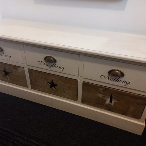 Valkoinen eteispenkki mitä käytetty senkkinä.
