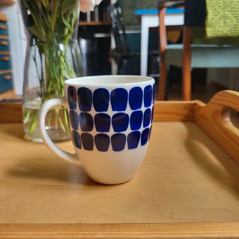 Arabia 24h kahvimukit, 6 kappaletta. Sini-valkoiset Tuokio sarjaa. Ollut meillä käytössä satunnaisesti vieraskuppeina, joten kunto uudenveroinen.
