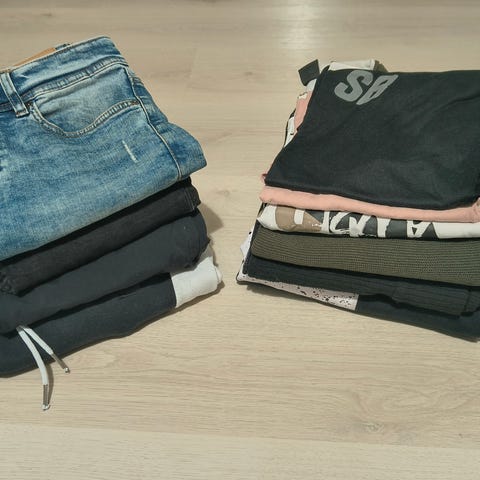 Myynnissä miehille tai pojille siisti vaatepaketti kympillä.