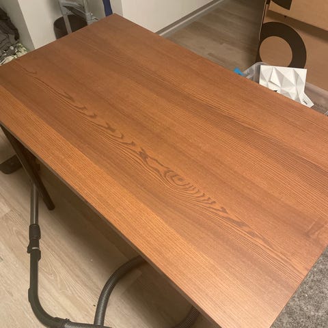 60x118cm pöytälevy, korkeus 75cm. Muuten siisti, mutta pinnassa kaksi virhettä (toinen kuva). Jää piiloon, jos käyttää kirjoitusalustaa.