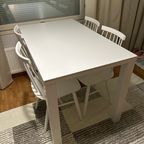 Hieno kuntoinen valkoinen Jysk ruokaryhmä. Vähällä käytöllä ollut, kuin uusi.