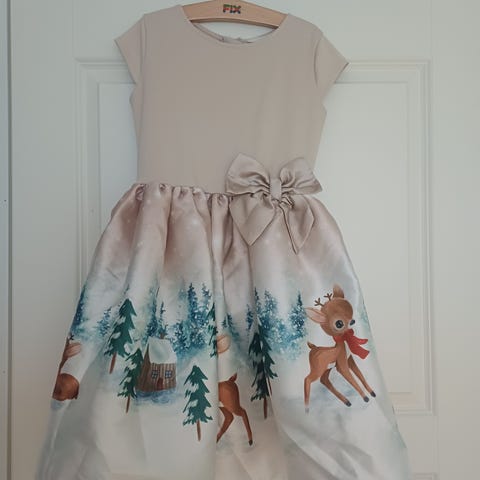 Kirjava mekko tumman vihreällä pohjalla. Vähän paksumpi joten menee hyvin talvella ja viileinä kesäpäivinä. Tarjoa