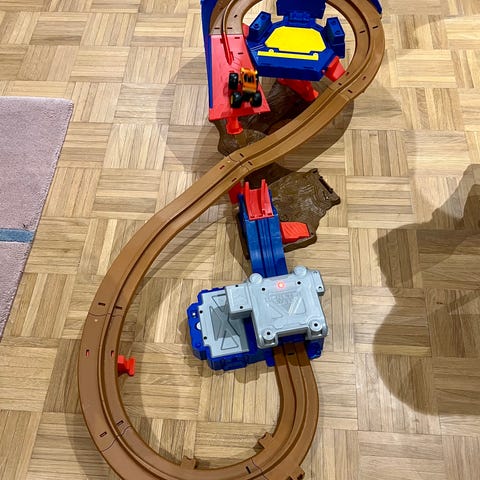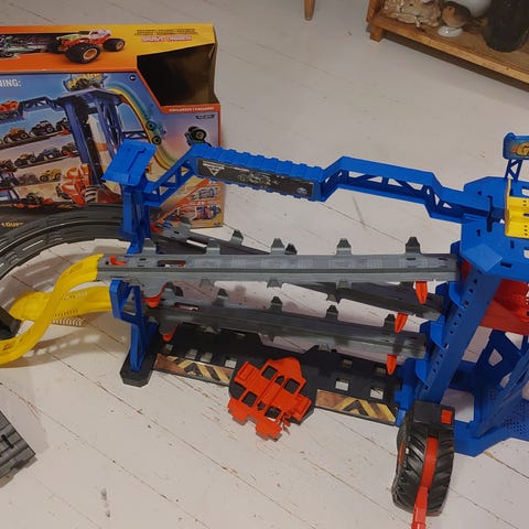 Sisältää koottavan skorpionin muotoisen autoradan ja rampin.