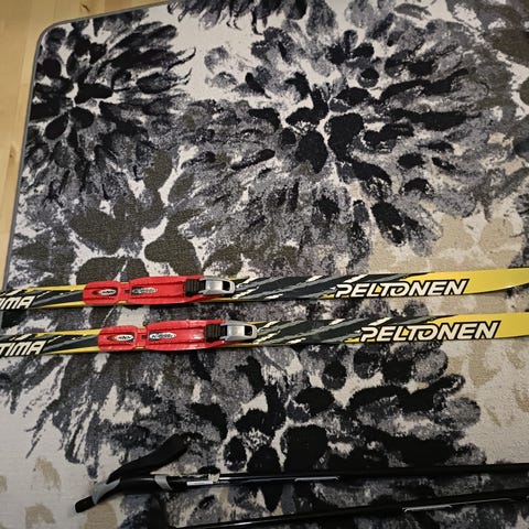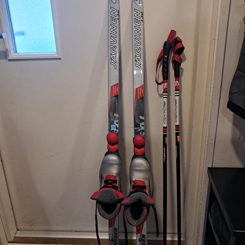 Hyväkuntoinen suksipaketti lapselle.