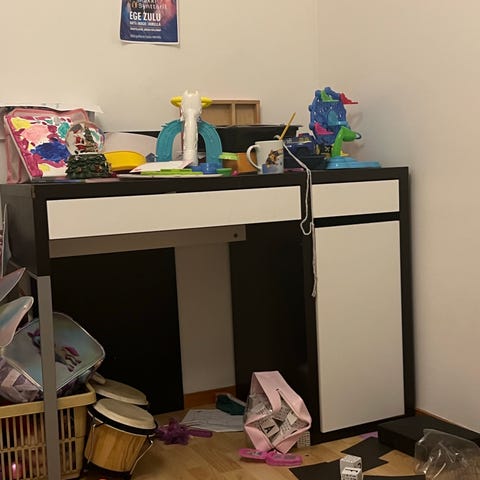 Lasten kirjoituspöytä, jossa sinivalkoinen (vanha) maailmankarttakuosi pöydän pinnassa. Pöydässä 4 vetolaatikkoa ja avointa hyllyä. Sopii lasten huoneeseen tai opiskeluun. Nostalginen kartta 1990 luvulta 😊. Hyllytasosta pöydän päällä on oma ilmoitus.