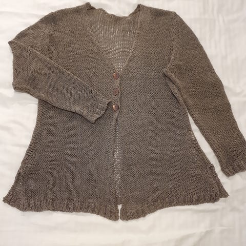 Myydään pari kertaa käytetty neuletakki. Täyttä villa. Pehmeä eikä ainakaan minua ole kutittanut. Kai-kai 56, kai- hiha 49, niska-helma 75.