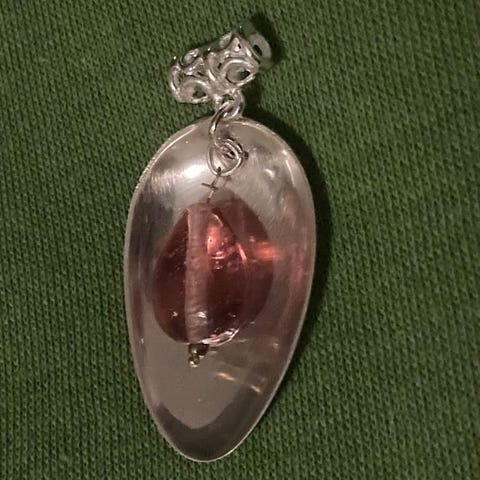 Hopeisista Chippendale-lusikoista valmistettuja riipuksia. Tarkemmat tiedot ja hinnat kuvissa.