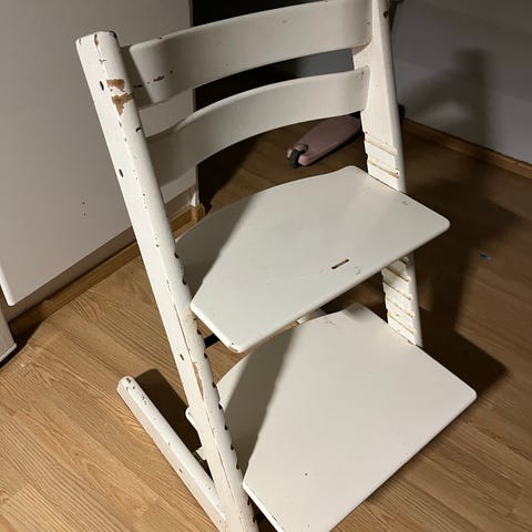 Satunnaisessa mummolakäytössä ollut syöttötuoli. Saa asennetua tavalliseen selkänojalliseen tuoliin. Hieman käytönjälkeä muovisessa selkänojassa taustapuolella, näkyy kuvissa.
