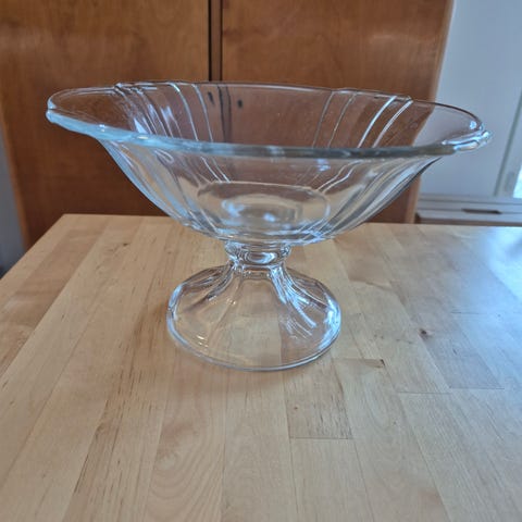 Kuvien vanha jalallinen lasikulho.