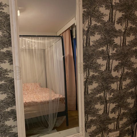 Jysk peili koristeellisella hopeanvärisellä kehyksellä