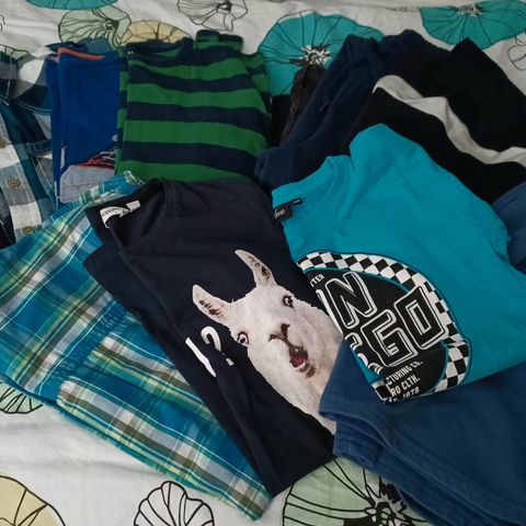 3kpl pitkähihaisia paitoja, 5kpl t-paitoja, 3kpl huppareita sekä kahdet housut ja shortsit.