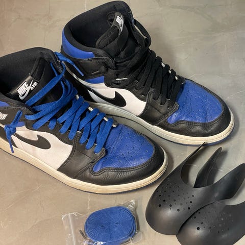 Lähes käyttämättömät Jordan 1. Koko on naisten US 10.5 joka vastaa miesten 42.5. Laatikkoa ei ole enää koska ovat olleet niin pitkää säilytyksessä. Mukaan tulee alkuperäiset vaihtonauhat.