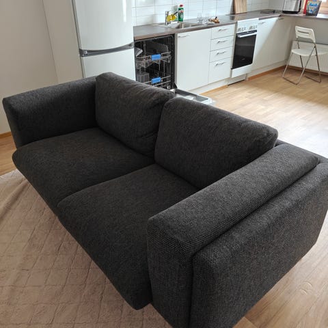 Myydään hyväkuntoinen sohva isomman tieltä pois. FINSOFFA. Kuvissa näkyvissä todellinen väri.