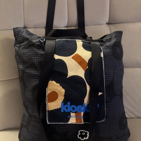 Loistavassa kunnossa myös pohjasta ja sisältä (ks. viimeisimmät kuvat). Vahvasta markiisikankaasta tehty iso Marimekon kassi. Vain muutaman kerran käytetty. Olkahihnat nahkaa. Pohjan pituus 49cm. Sopii hyvin esim. rantakassiksi. Voin postittaa, kulut ostajalle. Ei Toridiiliä.