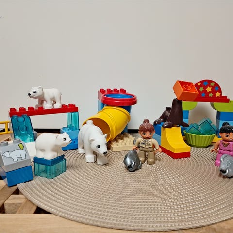 LEGO DUPLO Sirkus leikkisetti sisältää erilaisia palikoita ja hahmoja, mukaan lukien eläinhahmoja kuten hevonen, norsu ja apina. Suurin osa osista tallella. Sopii hyvin rakenteluun ja leikkiin.