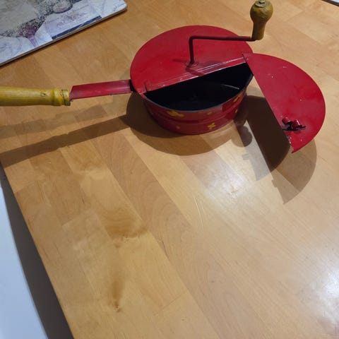 Piknik-setti, jonka vilttiä on käytetty ehkä kerran. Astiat käyttämättömiä.