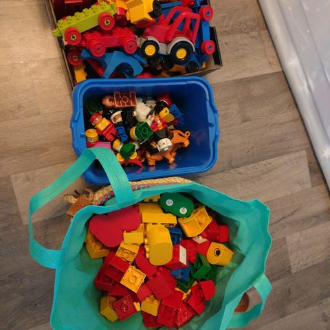 Pääosin 90 luvun duploja isossa sängynalus laatikossa. Siistejä.