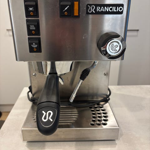 Rancilio Rocky kahvimylly annostelijalla. Mylly on ollut viimeisen vuoden käyttämättömänä. Sitä ennen satunnaisella käytöllä. Kahvimyllyssä on levyterät, jotka on lopputuloksen kannalta paras terätyyppi. Tekee edelleen hyvää espressojauhatusta. Kahvimylly on puhdistettu uutta käyttäjää varten ja tyyppivika, annostelijan jousi, vaihdettu upouuteen. Mukaan pussi puhdistuskristallia.
