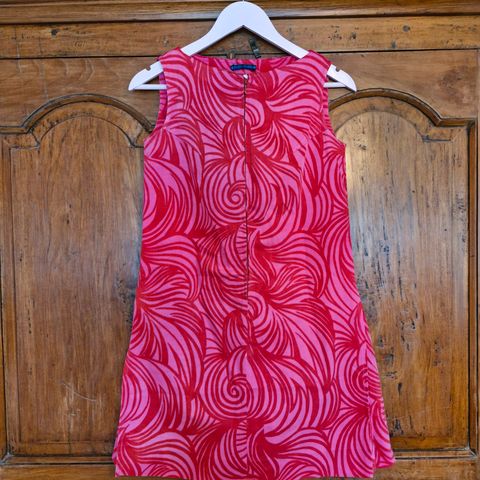 Finnwear juhlamekko, koko 42. Mekko on valmistettu sametista ja väriltään viininpunainen. Mekossa on 3/4 hihat ja vyö vyötäröllä. Vetoketju takana. Kauniita yksityiskohtia, kuten koristenappi hihansuussa. Hillityt olkatoppaukset. Ostettu Vintage vaatekaupasta aikoinaan. Menee M ja L -kokoiselle. Tällaista ei tule heti vastaan, eli aika uniikki yksilö esim. tärkeisiin juhliin! Erittäin hyvä vintage-kunto (toki olkatoppauksissa esim. kulumaa, mutta se ei näy ulospäin).
