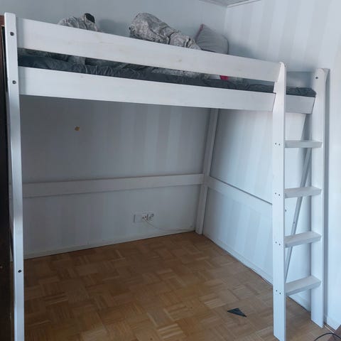 Toisen sängyn tieltä myyntiin parvisänky. Kunto ok, muutama tarran jälki löytyy ja alimmaisen laatikon etulevy irti, tallessa kuitenkin.