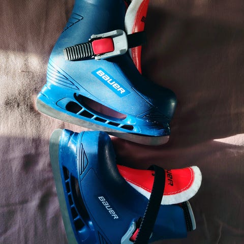 Ollut käytössä yhdellä lapsella ja kunto hyvä kärjen pientä kulumaa lukuunottamatta. Luistimet juuri teroitettu.