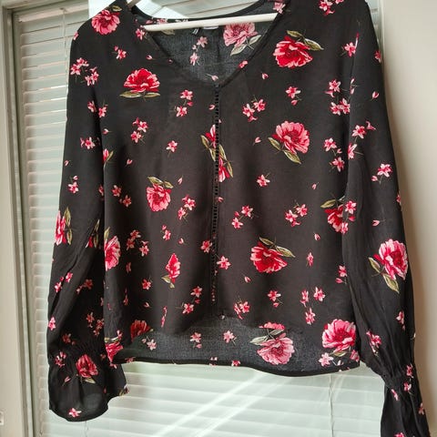 Kaunis vuorellinen kukkapusero. Koko M-L-XL , 50% polyester, 50% viskoosi