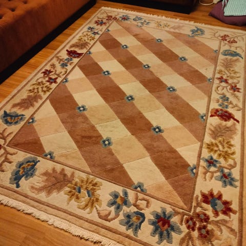 Hyväkuntoinen paksu, lämmin villamatto. Väri tummanharmaa, jossa vaaleampaa harmaata seassa.