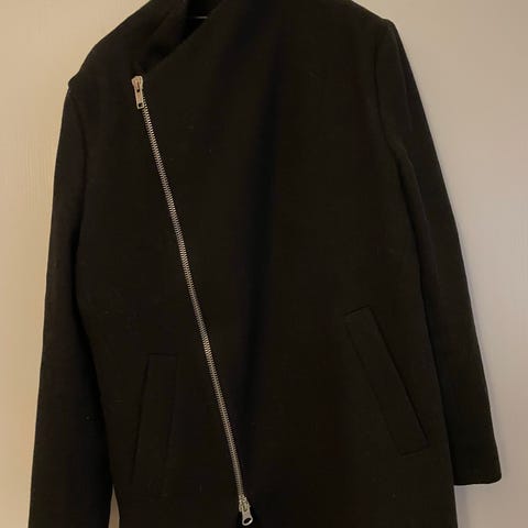 Tyylikäs musta Allsaints villakangastakki. Edessä kaksi taskua ja povitasku.