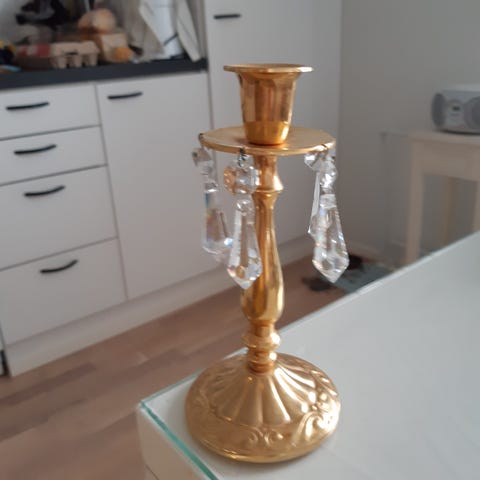 Kynttilänjalka messinkiä tai pronssia. Korkeus noin 16cm. Kuluneisuutta.