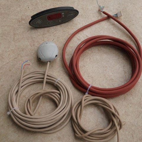 Kiuas on täysin toimiva, vuonna 2010 valmistuneeseen kotiin aikanaan ostettu. Teho 6 kW, ehjät vastukset. Ilmaluukun säätönuppi irtoaa turhan helposti vedettäessä (ks. kuva), mutta toimii. Kivet poistettu, mutta kannattanee vielä imuroida murut ennen käyttöönottoa.