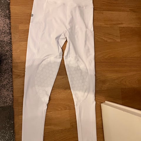 Kokopaikkaiset silikonigripit ja käytännöllinen puhelintasku. Uudet, vain kokeilut jalkaan, laput kiinni. Pysyttelemmekin sittenkin hevosen kanssa pinkissä väriteemassa, tämän vuoksi pois kaapista.