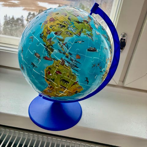 Myydään 3D maapallo -palapeli. Korkeus telineen kanssa noin 15cm. Nouto Tampereelta Veisusta.