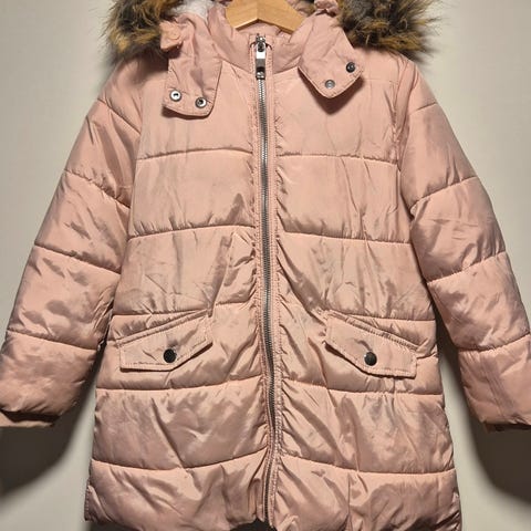 Todella hyväkuntoinen, ns. "pyhätakkina" ollut musta toppatakki. Koko 98/104. Ei lemmikkejä ja käytössä hajusteettomat pesuaineet.
