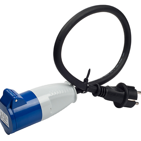 Toisessa päässä maadoitettu pistorasia ja toisessa päässä 3-napainen pistotulppa (uros). 0,5m.