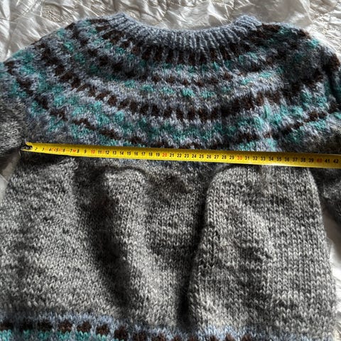Käsinneulottu Kirjava villapaita unisex koko 134